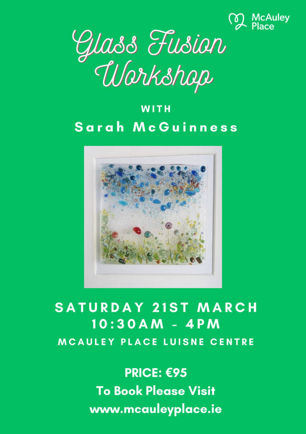 Join Glass Fusion expert Sarah McGuinness for a one day workshop on Saturday 21st March 2026 at 10:30am at which you'll create your very own bespoke piece of glass art in a fun relaxed atmosphere